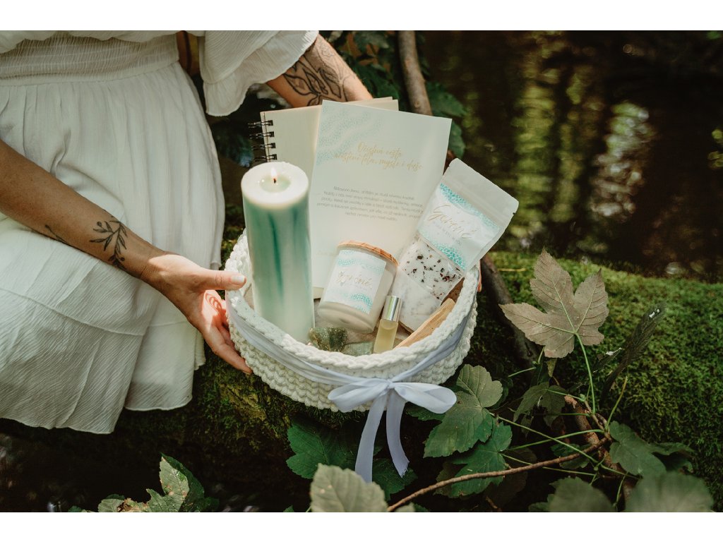 Prémiový rituální balíček ,,Vnitřní očista,, přináší komplexní systém pro hlubokou transformaci. V prostorném háčkovaném koši objevíš rozšířenou kolekci o válcovou svíci a dřevěný zápisník. Dokonalý dar pro ženu procházející životní proměnou.